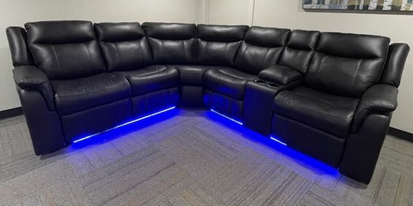 This reclining sectional pairs the luxe look of faux leather with must-have functional features. LED lights on the underside put a modern twist on the simply chic design—choose from three colors to add ambiance to movie night or gaming with friends.Read More