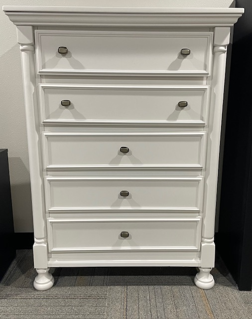 Stow away your child’s wardrobe in the 5 smooth-gliding, dovetail drawers of the Kaslyn drawer chest. Place more delicate belongings in the felt-lined top drawer for safe keeping.
