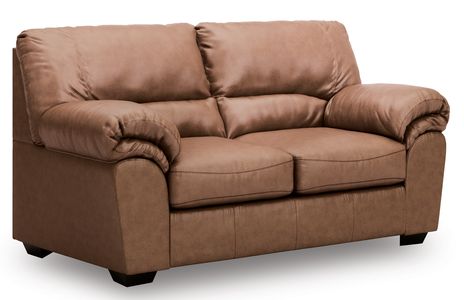 Modern comfort never looked so good. Sporting supremely soft yet durable cushions accented with high-fashion jumbo stitching, this stunning loveseat is the ultimate choice in comfortably cool, contemporary style. Its caramel-hued faux leather indulges with an upscale feel and wows like the real thing.Read More