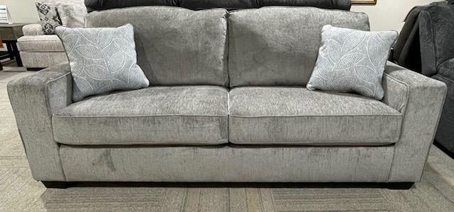 Stretch out against the box back cushions, plush alloy-hued chenille upholstery, and track arms of the Altari sofa.