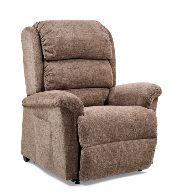 Experience customized comfort with the new Polaris Small Power Lift Chair by UltraComfort. This ergonomic power lift recliner offers a tailored pillow back for a clean, yet relaxed style while providing ideal support. The plush arms and extra wide chaise pad, along with four sizing options, provide hours of endless comfort for every individual.Read More