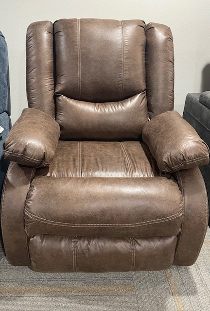 This Bladewood coffee-colored recliner has pillow arms, pull-tab reclining, and zero-wall design so you can recline close to a wall on the supple feel of faux leather upholstery.